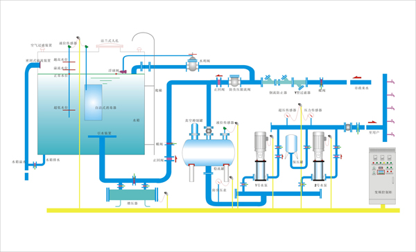 中贏供水公司熱銷(xiāo)產(chǎn)品:無(wú)負(fù)壓給水設(shè)備、恒壓供水系統(tǒng)等原理圖